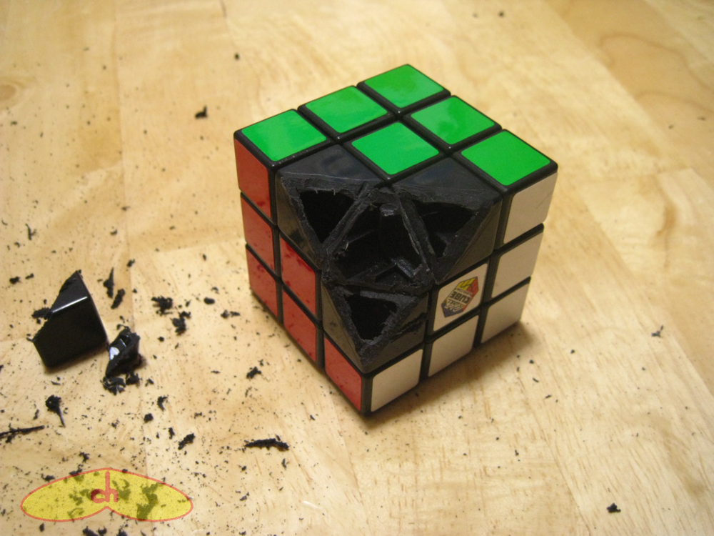 This was my first real Rubik’s cube mod. It was my first time using my dremel tool, and really, my first time doing any manual work which didn’t involve assembling furnityre. I got very satisfied with the result. I made it following pictures I found online and used LanceTheBlueKnight’s capping method. The video was filmed with an old Canon I had, and editted on Windows Movie Maker – hence the poor quality. Everything was improved on my following mod, the Octagon Barrel, from the mod to the video.
