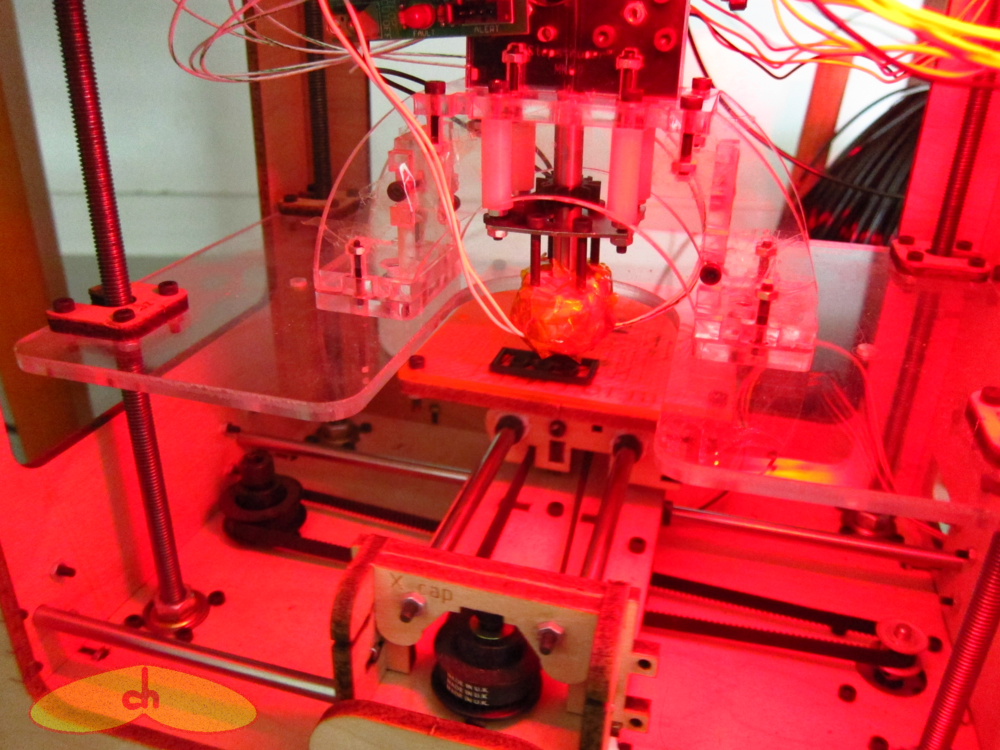For those unfamiliar with desktop 3D printers, the ones like RepRap and Makerbot work with FDM (fused deposition modeling), which is basically melting a material and extruding it through a thin nozzle which moves controlled by a computer and creates an object layer by layer. Too compplicated? As Adrian Bowyer, the founder of ReRap usually explains, it’s like a computer controlled hot glue gun depositing layer by layer of the object. To print out something you get the virtual 3D model of an object (like a CAD file) and slice it up with a software which gives the instructions for your printer’s nozzle to move around.