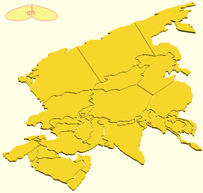 I began by manually (with the mouse, not with my “mano”) tracing all countries on Inkscape. Then I saved them as individual 2D .dxf files and extruded them to 3D shapes with Openscad to make printable .stl files. Simple process, tough work.