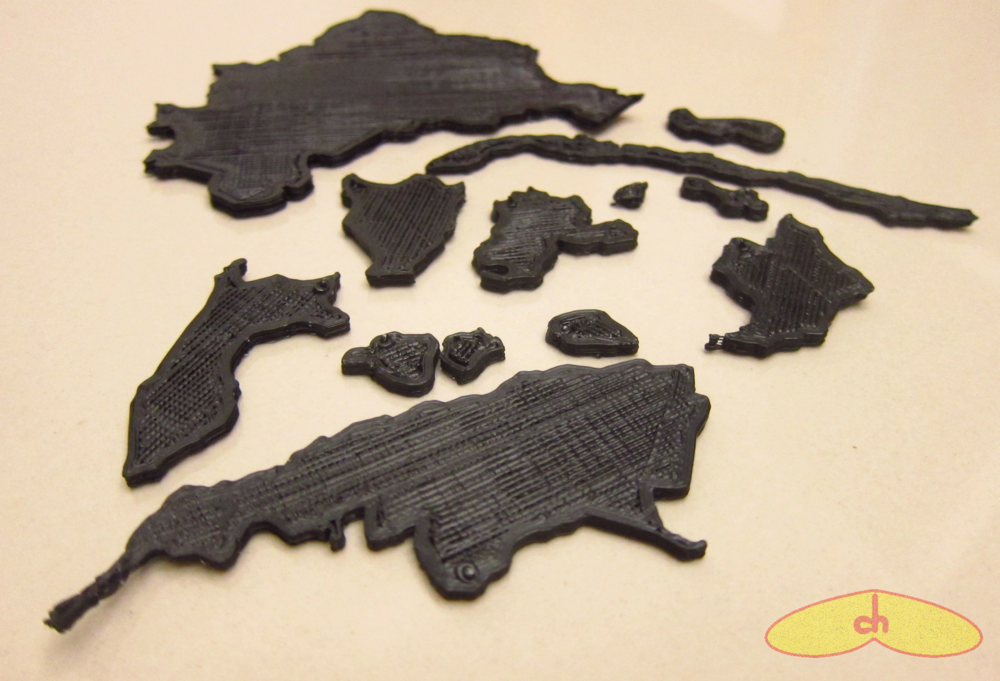 Right now I’m printing Africa at a slightly larger scale than South America. Some countries like The Gambia won’t be printable though, but most of the continent is coming out well. Will post pictures and files soon. (Update: here it is!)