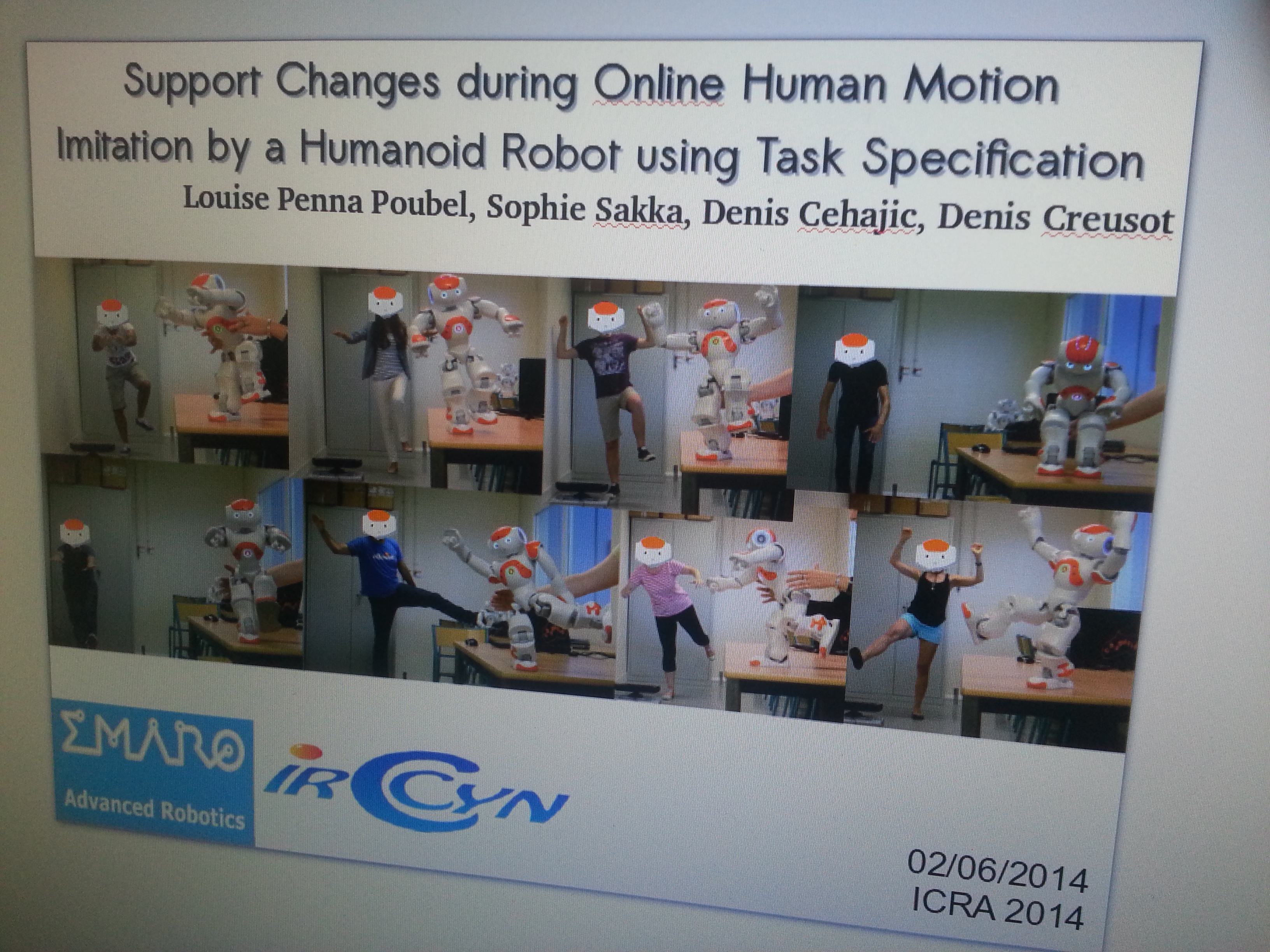 The International Conference in Robotics and Automation (ICRA), is one of the biggest robotics conferences in the world. I was there to present a paper I wrote during my master’s: Support Changes during Online Human Motion Imitation by a Humanoid Robot using Task Specification.