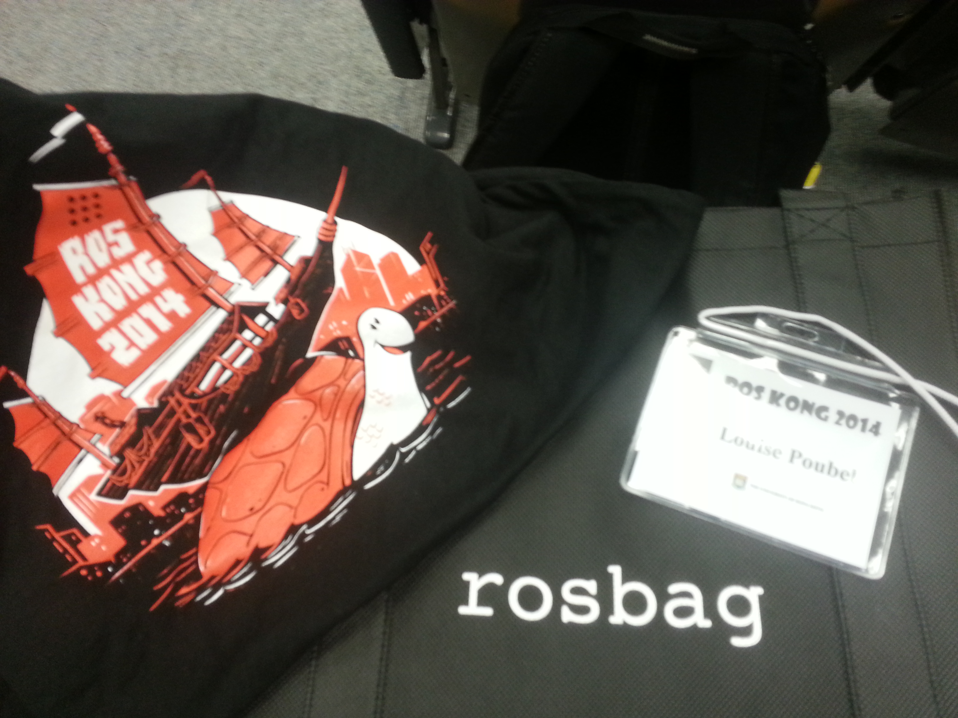 Some months ago I did an internship with the Open Source Robotics Foundation (OSRF) through the Outreach Program for Women. The program offers a travel allowance to an event related to the internship, so I used it to attend ROS Kong, the first official ROS (Robot Operating System) meeting in Asia, which happened right after ICRA. Got some great goodies there, including a rosbag ehehe